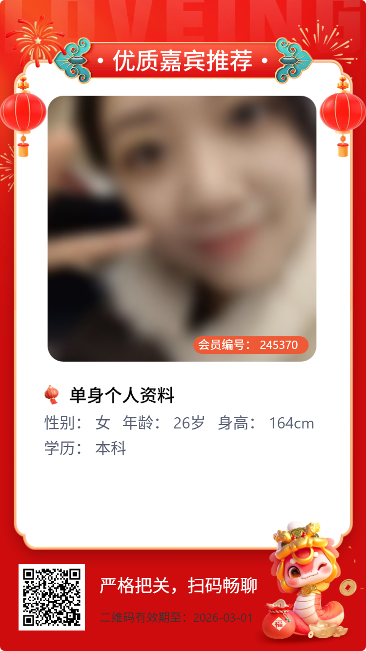 性格优势:共情力强,心思细腻真诚,善于换位思考,能敏锐捕捉他人情绪;有自己的精神小世界。谈恋爱比较粘人和玩抽象。 兴趣爱好:打游戏,线下游戏,菜的体育项目。爱阅读、国漫、写随笔,享受沉浸式独处;喜欢和同频的人一起探店美食、出去旅游,在自然中治愈情绪;偶尔绘画、拼乐高,练字等用细腻的方式感知生活。 家庭氛围:家庭凝聚力强,亲情至上;家人各自有稳定收入,即便忙碌也会定期团聚;父母和善包容,给予充分个人空间。 专业职业优势:深耕教育领域,擅长用温暖的方式传递知识,兼具亲和力与专业度;工作稳定且有成就感,时间弹性适中,能平衡事业与生活。 为啥想谈恋爱:渴望一段双向奔赴的深度联结,希望找到能懂我精神世界的盟友,既能共担风雨,也能共享三餐四季的浪漫;相信好的感情是彼此滋养、共同成长,让平凡日子变得有温度。 目前年收入及住房:年收入5w。 工作婚姻计划:工作上稳中有进,计划1-2年内深耕专业领域,考非全研究生,提升个人价值;期待4年内遇到三观契合的伴侣,组建温暖小家,婚后平衡事业与家庭,用心经营生活。 理想的另一半:175以上,情绪稳定、有担当,能共情包容我的敏感与细腻;重视精神共鸣,聊得来、三观合,愿意一起探索世界;有清晰的生活规划,能和我并肩成长,成为彼此的能量源泉;拒绝大男子主义、冷暴力与内耗型相处。 理想的恋爱生活:彼此坚定选择、信任与包容,遇事积极沟通不冷战,始终是“我们VS问题”;既能宅家窝沙发追剧、聊日常碎碎念,也能一起健身、旅行、看日出日落;精神上互为知己,生活里互相照顾,松弛惬意不内耗。 全文