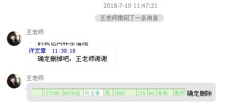 红娘王老师接到双方删除指令后:“许先生、赵女士,确定要删除征婚信息吗,删除代表我们的服务协议即刻终止,您确定删除。”